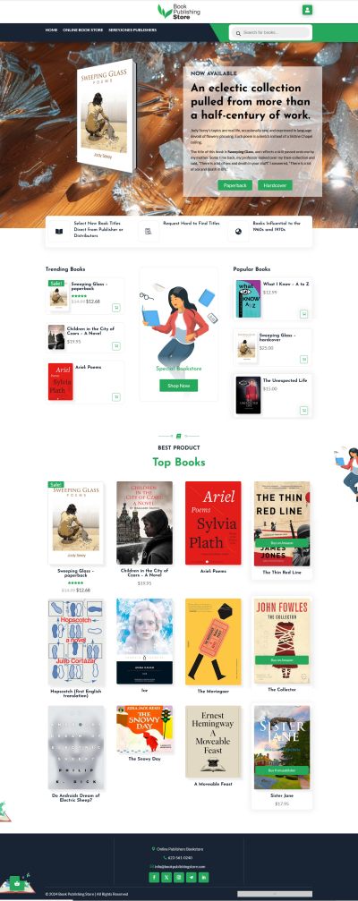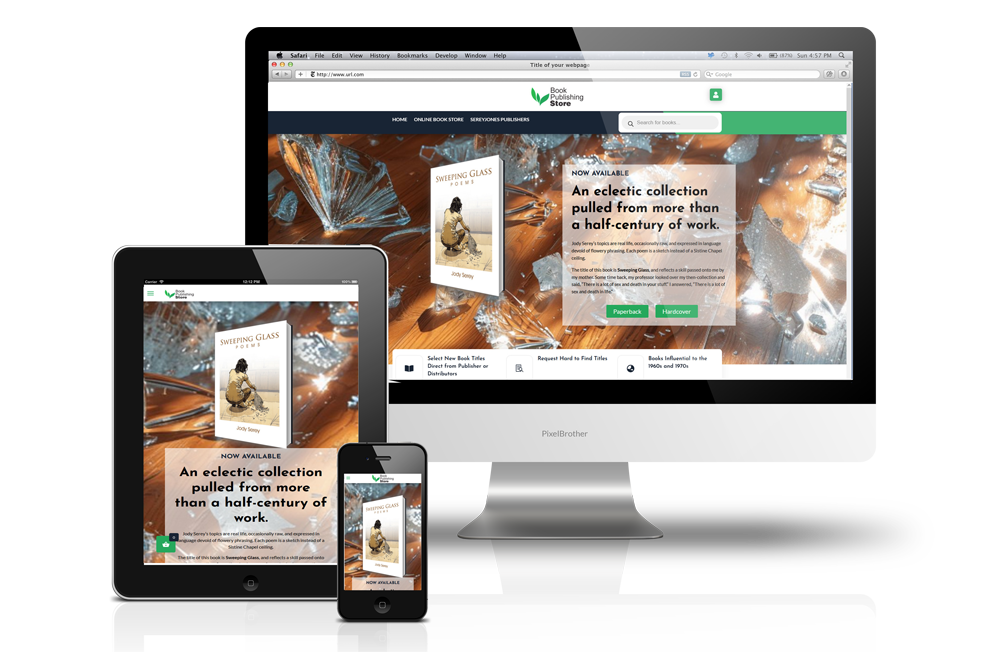The Book Publishing Store website was developed by SereyJones with many advanced features to allow extreme versatility for online sales. For instance it can accommodate direct sales and fulfillment on some products and affiliate external sales on others. The website included a custom logo and design features such as a floating shopping cart for direct sales.